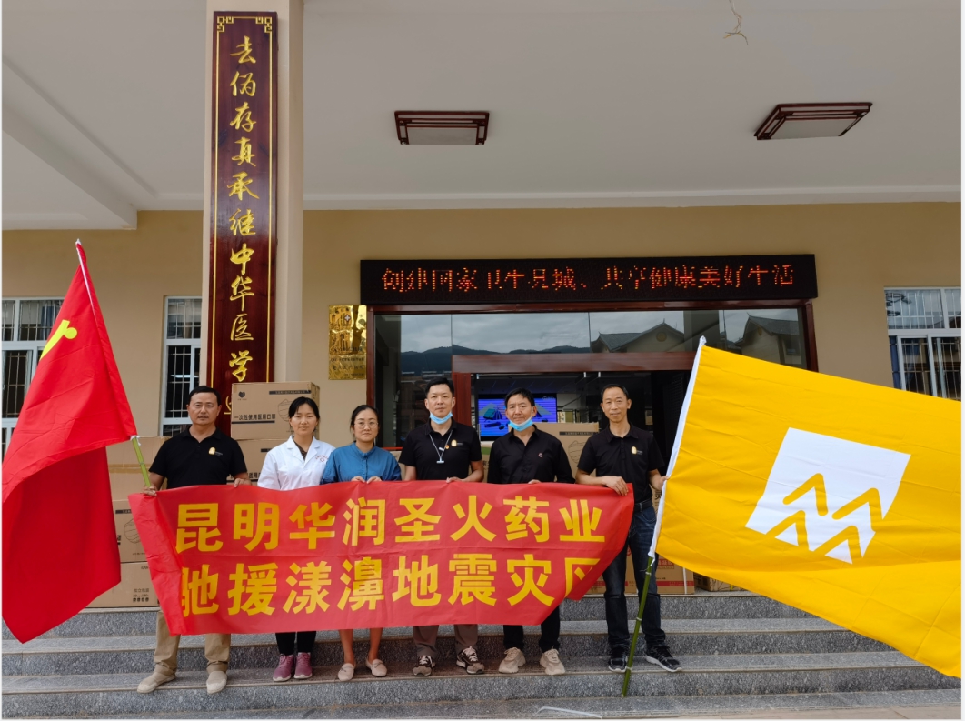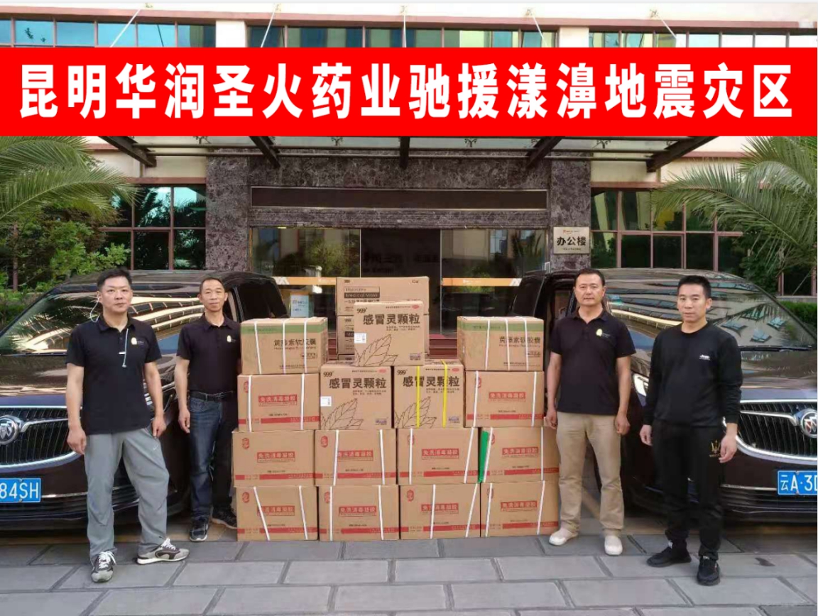 22日,,,,,,,华润圣火药业筹集并采购到灾区急需的伤风药、肠胃药、皮肤药等常用药品,,,,,,,消杀用品,,,,,,,口罩等物资,,,,,,,共计价值10.1万元,,,,,,,并于23日送抵云南省大理州漾濞县中医医院。。。。。。。