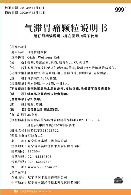 气滞胃痛颗粒2.5gx6袋