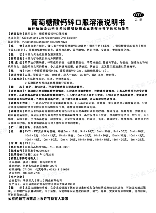 葡萄糖酸钙锌口服溶液