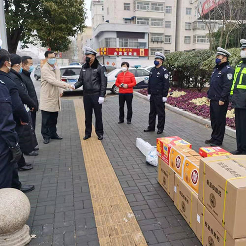 2月6日下昼,,,,,,,,东升国际:66856top(枣庄)认真人谢志坚、朱晓倩带队,,,,,,,,将50箱板蓝根药品送至枣庄市高新区管委会,,,,,,,,并同高新区管委会韩耀辉主任和经发局崔玉红局长一同对高新区公循分局民警和战斗在一线的值班卡点交通警员举行了慰问。。。。。。。