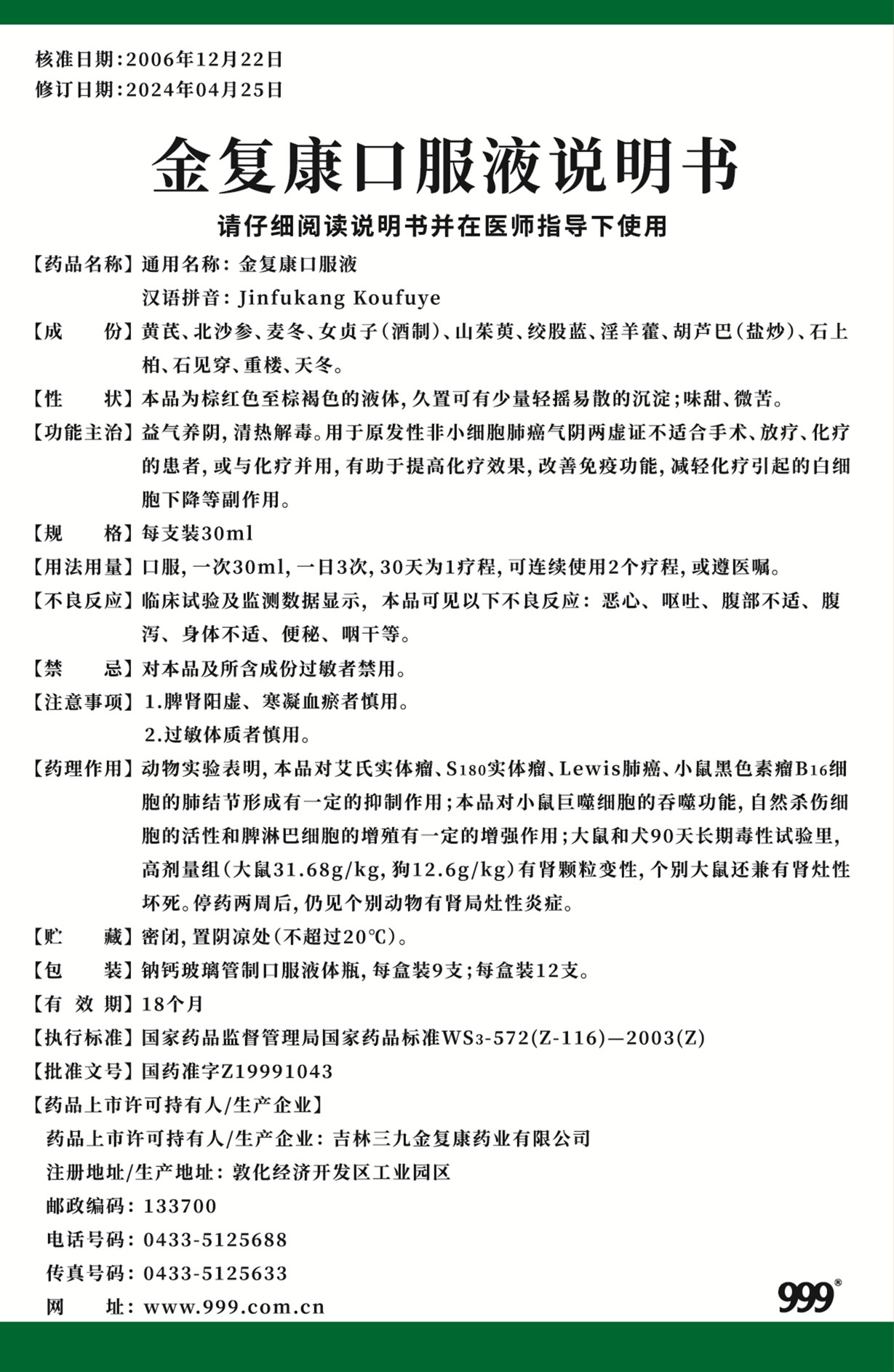 金复康口服液产品先容